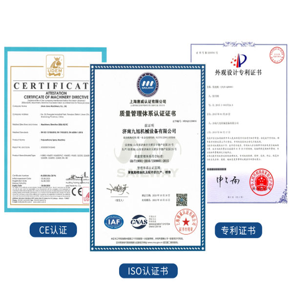 山東九旭機械科技有限公司歷經(jīng)十幾年的發(fā)展,已成長為聚氨酯設備行業(yè)頗具實力的設備制造業(yè)之一。企業(yè)主要產(chǎn)品:聚氨酯高壓噴涂機、聚氨酯發(fā)泡機、聚氨酯噴涂機、聚脲設備、聚氨酯發(fā)泡設備、聚氨酯發(fā)泡機等關于設備配件(聚氨酯高壓噴槍、槍嘴、加熱管道、料塊、摩擦副、增壓泵、混合式、提料泵等)也是堅持最好的質量服務用戶,并承接:外墻保溫、冷庫保溫發(fā)泡等工程。山東九旭機械科技有限公司已通過ISO9001:2015質量管理體系認證和國家高新技術企業(yè)認證,目前山東九旭機械設備已領跑中國聚氨酯設備行業(yè),成為廣大客戶之首選。